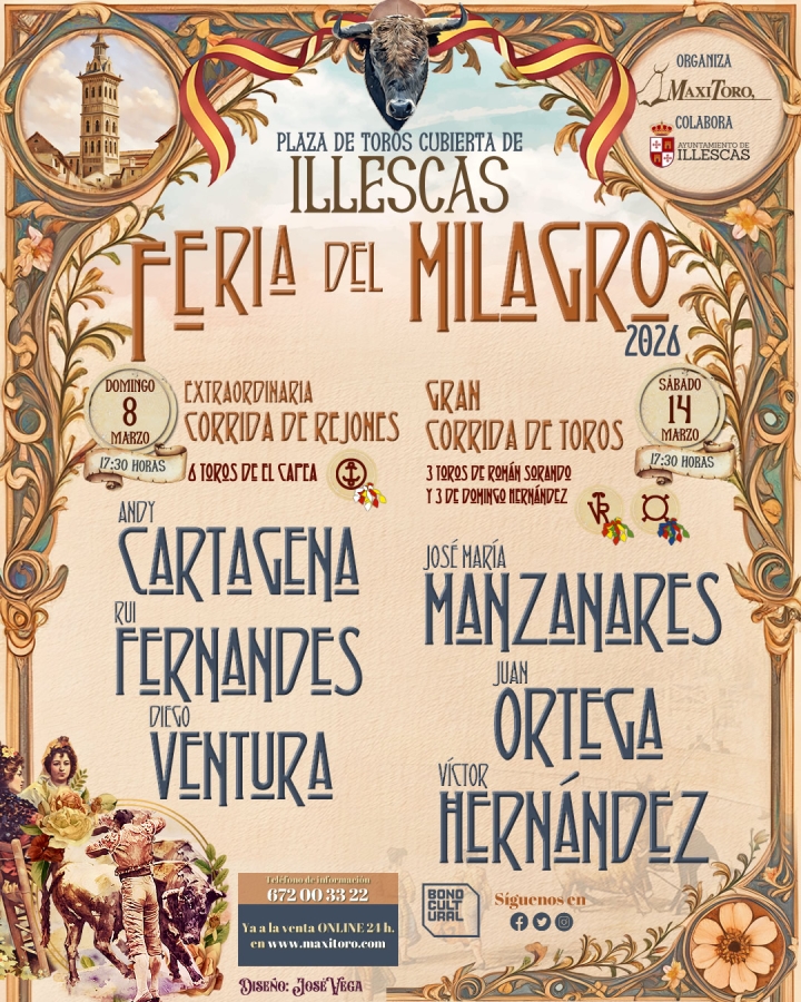La venta de entradas de forma anticipada será de forma online en la página web www.maxitoro.com a partir de este día 30 de diciembre de 2025, mientras que la venta en taquilla será a partir del día 19 de enero de 2026 ubicada en la Avda. Castilla La Mancha nº 89 de Illescas (junto al restaurante El Bohío) en horario de 10´30 h. a 14´00 h. y de 17´00 h. a 20´00 h. de lunes a domingo. Los domingos tarde permanecerá cerrada.
